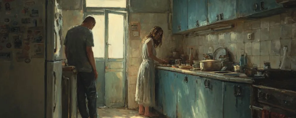 היא מספרת על יום קשה, והוא מהנהן ואומר "יהיה בסדר". השיחה נעצרת. אבל בפנים הוא מרגיש אשמה, תסכול וגם רצון לעזור – רק שאין לו שפה להביע את זה.
